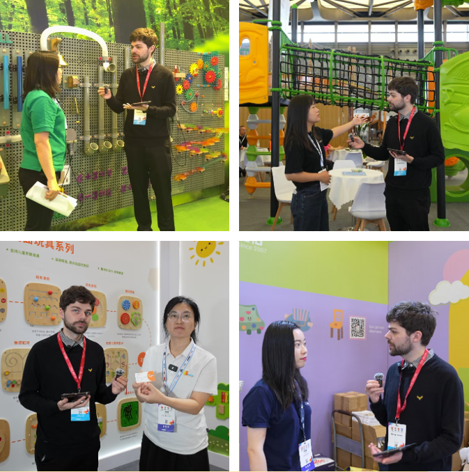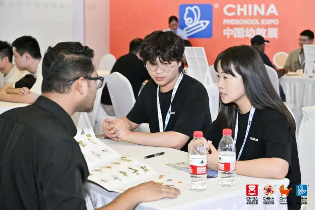2025CPE中国幼教展现场举行“海外买家对接会”,专设海外买家对接洽谈区,通过精准匹配为供需双方搭建高效合作的桥梁。对接会现场邀请近百家国际买家和采购团到场参与,采用1v1对接模式,帮助外销型企业与海外采购商、海外采购团实现精准对接。
